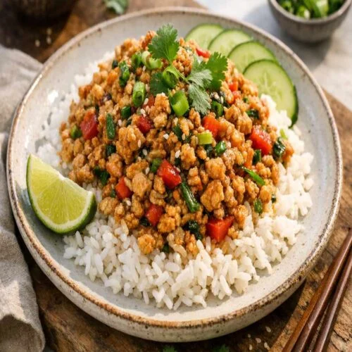 When I think about weeknight dinners that feel both nourishing and exciting, this Asian-inspired ground chicken dish is always on my rotation. It comes together in under 30 minutes, delivers incredible flavor, and gives you a complete meal packed with protein and vegetables. Whether you’re serving it in crisp lettuce cups, atop a vibrant bean sprouts salad, or over rice, this recipe proves that eating well doesn’t require hours in the kitchen or a list of complicated ingredients.