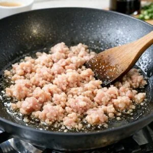 - Ground pork for ground chicken – A 93/7 ground pork works here, though expect slightly richer flavor. You may want to reduce the peanut oil to 2 teaspoons since pork carries more fat. Cook time remains the same.