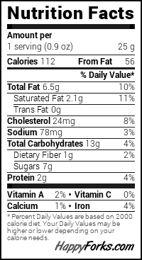 Carbohydrates: 13gProtein: 2gFat: 6.5gSaturated Fat: 2.1gCholesterol: 24mgSodium: 78mgFiber: 1gSugar: 7gVitamin A: 2IUCalcium: 1mgIron: 4mg